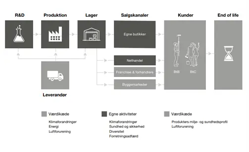 Vi udvikler produkter fra en central udviklingsafdeling, producerer på egne fabrikker og følger produkterne hele vejen ud til butikkerne, hvor vores medarbejdere vejleder og hjælper kunderne til et optimalt resultat.