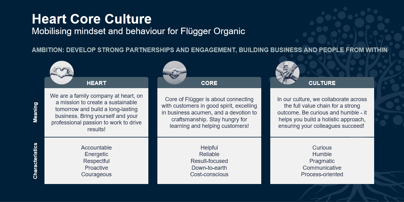 Flügger lancerede strategien Flügger Organic – Delivering sustainable value i 2024. Strategien viderefører grundholdningen om at være medskaber af en grønnere industri og sætter samtidig en ny retning for forretningen med fokus på bæredygtig vækst og lønsomhed.