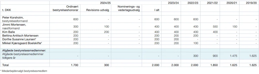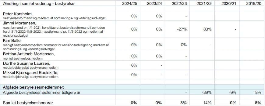 Bestyrelsens vederlag er fastsat på baggrund af indstilling fra Nominerings- og Vederlagsudvalget og godkendt på den ordinære generalforsamling den 21. august 2024.